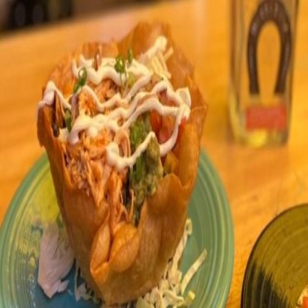 Two enchiladas rolled in corn tortillas with our three cheese blend, topped with lettuce & sour cream with your choice of popular tomatillo sauce or vegetarian verde sauce.