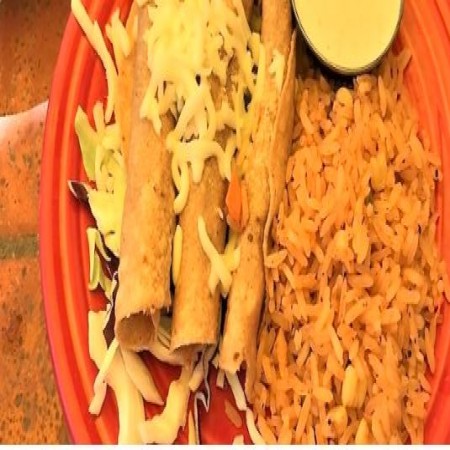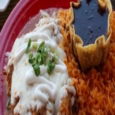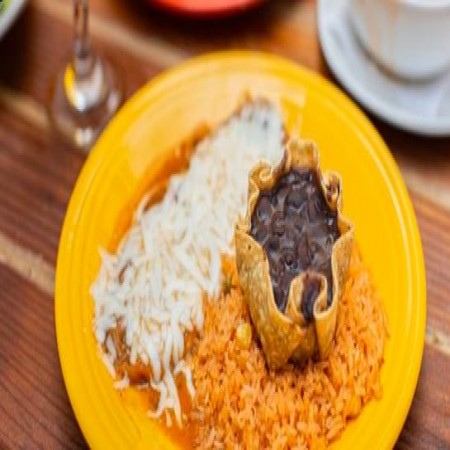 Two tamales with corn masa topped with tomatillo sauce & our three cheese blend. Served with Spanish rice & beans.